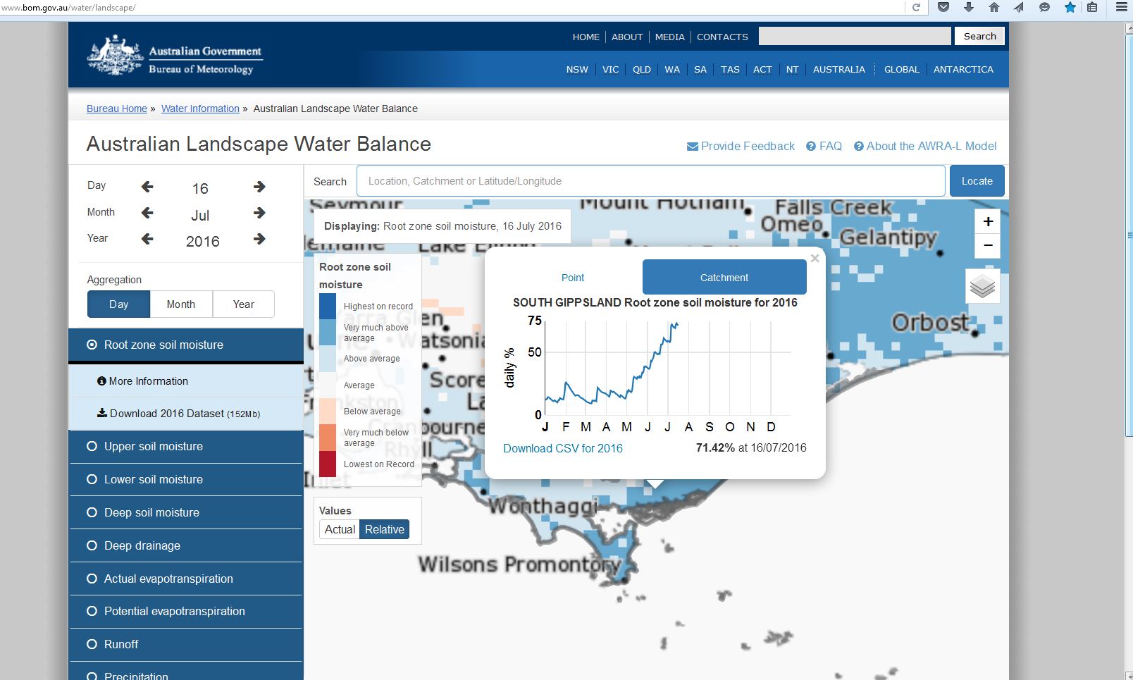 Root zone moisture levels
