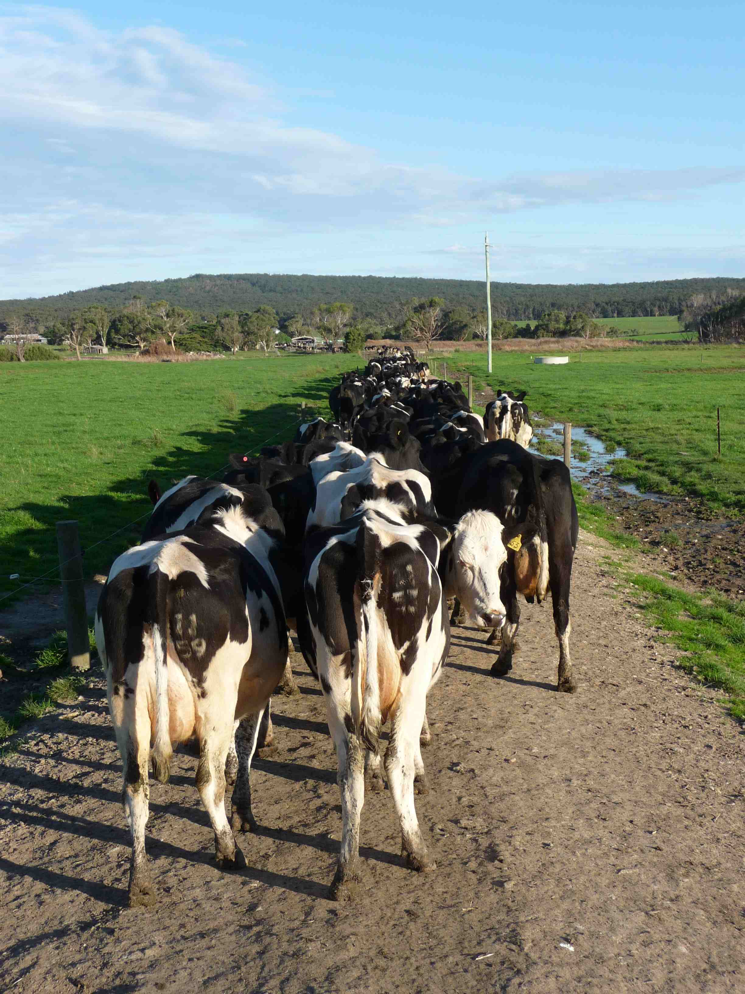 The cows crowd around us on their way back to the paddock.