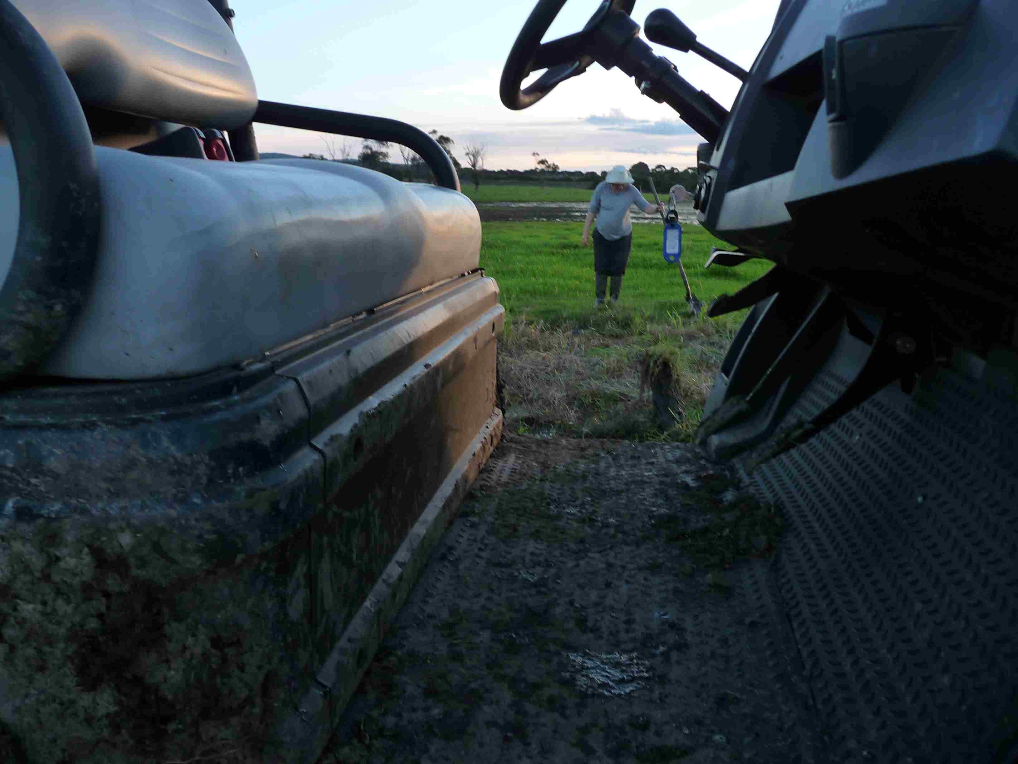 2.40 pm Quick snack and conflab with Wayne. 15 minutes later, we go off to round up while he feeds our maremmas, Charlie and Lola, and takes a bit of a break before milking.