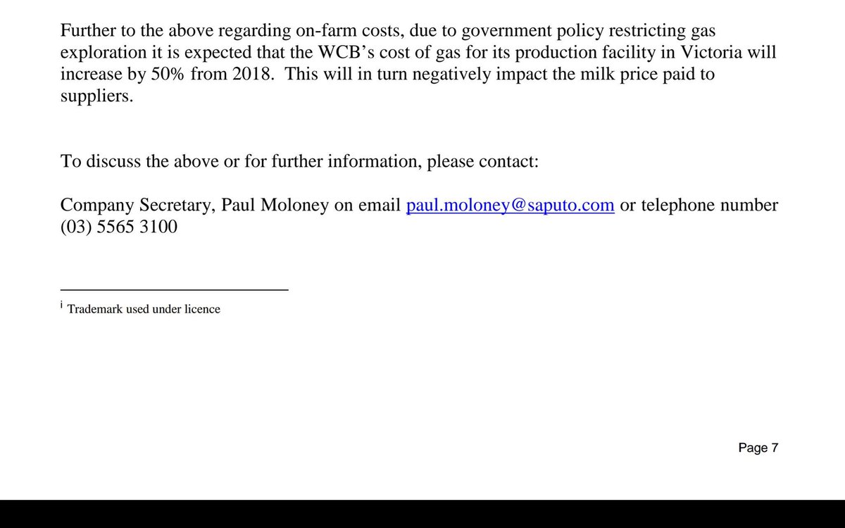 In February, Saputo announced a quarterly profit of C$197.4 million. I’m not sure why it feels it is appropriate to make Australian farmers responsible for its inability to negotiate a better energy contract. But it does because it can.