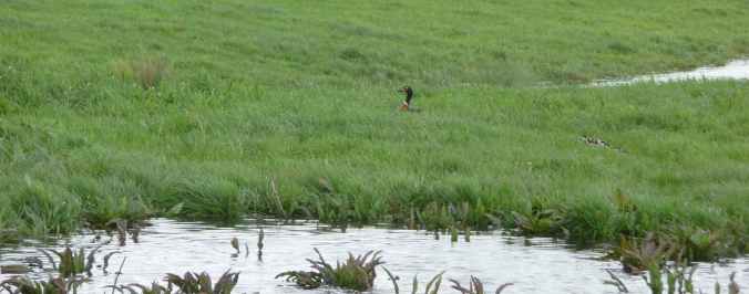 The fence strainer got a workout and then it was off, again, with pigtail post and poly pipe to remove Ball Face from his refuge. The gang stayed close to the fence and it was painfully obvious they would give him the medicine all over again, so I put him on the far side of the wetland, nine strands of hotwire away.